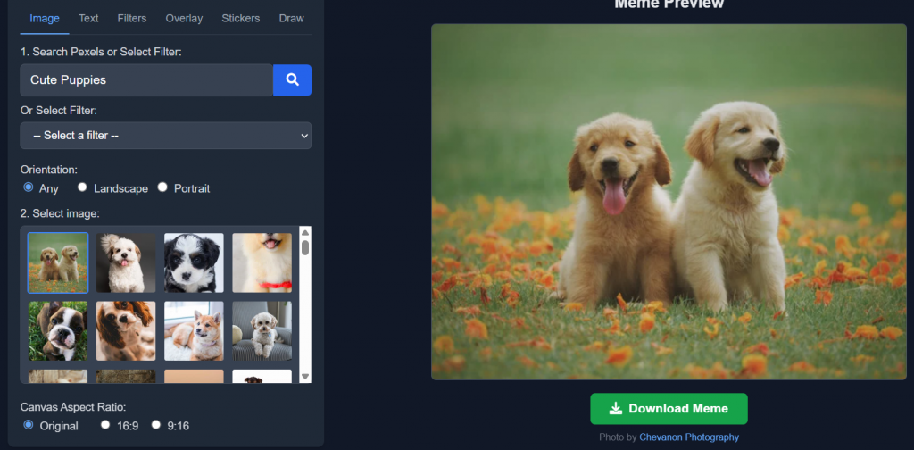 We cater to those weirdos who watch memes on their phones in portrait mode. We respect their choices, sort of. Crucially, we also give credit to the talented photographers who make these images available. You’ll see their names and links to their Pexels profiles right alongside the images you use.