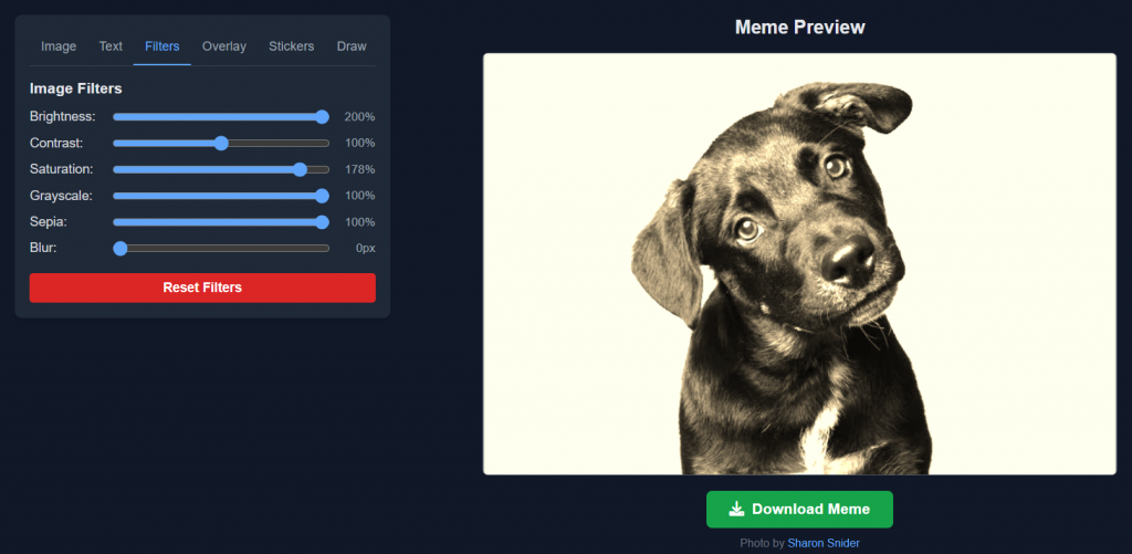- Grayscale and sepia instantly age your meme by 100 years, perfect for that ancient aliens vibe.